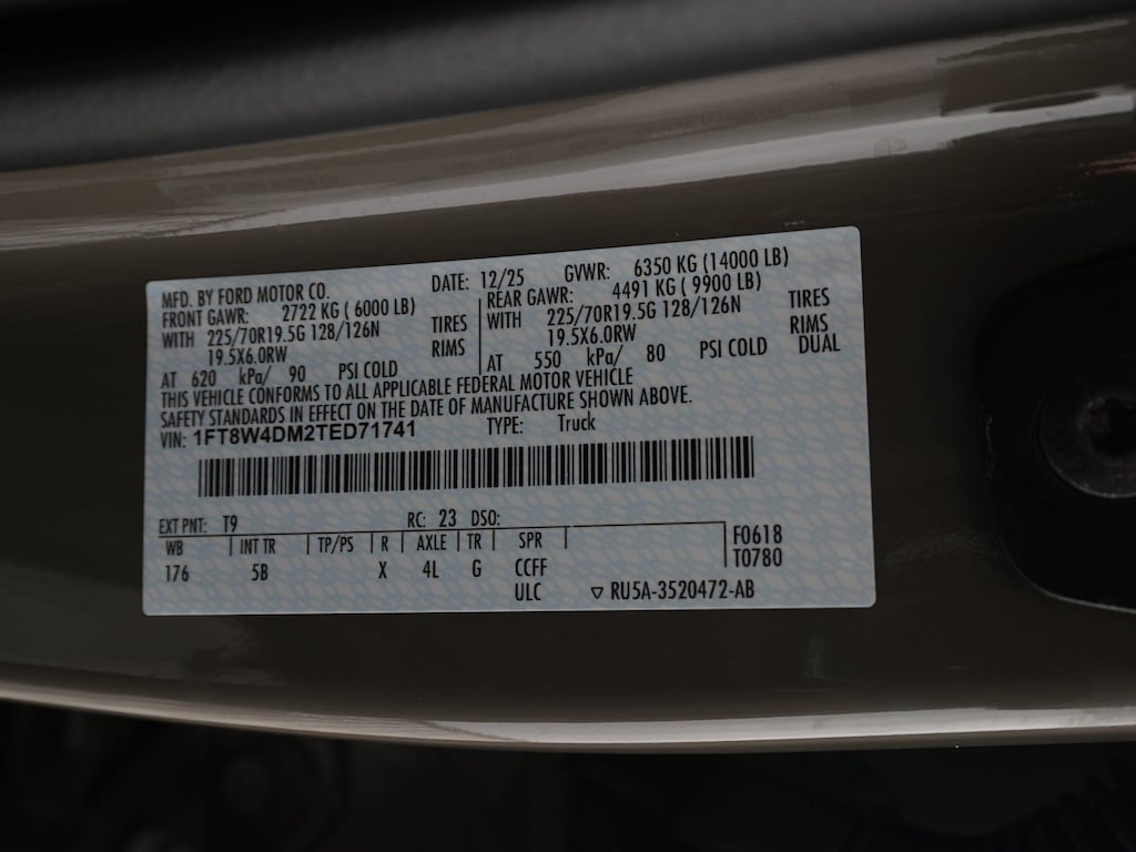 4WD, 360-Degree Camera, 4-Wheel Disc Brakes, ABS brakes, Auto High-beam Headlights, BLIS with Cross-Traffic Alert, Compass, Delay-off headlights, Dual rear wheels, Electronic Stability Control, Exterior Parking Camera Rear, Flow-Through Console, Ford Connectivity Package (1-Year Included), Ford Connectivity Package (one-Time Purchase - 7 Years), Front ActiveX Trimmed 40/Console/40 Seats, GVWR: 14,000 Lb Payload Package, Heated Front Seats, Heated rear seats, Heated steering wheel, Internet access capable: 5G Modem - Ford Connectivity Package, Limited Slip with 4.30 Axle Ratio, Order Code 678A, Radio: B&O Sound System by Bang and Olufsen, Rain sensing wipers, SiriusXM with 360L, Speed control, SYNC 4 with Enhanced Voice Recognition, Twin Panel Power Moonroof, Variably intermittent wipers, Ventilated front seats. DRW