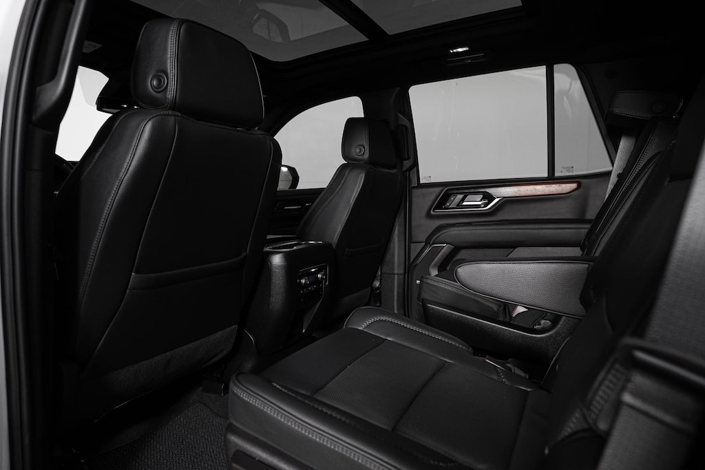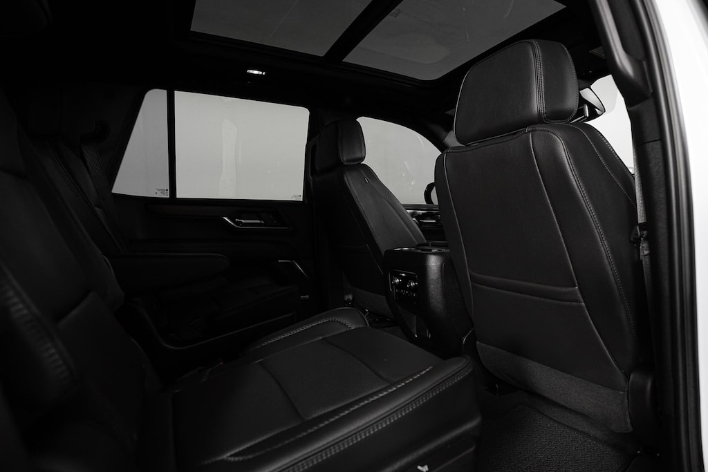 The interior of the Yukon Denali is a masterful blend of style and functionality. Luxurious perforated leather seating surfaces, heated and ventilated front seats, and a heated steering wheel provide unparalleled comfort. The spacious cabin offers ample room for passengers and cargo, with the convenience of a power-release second-row and split-folding third-row seats.