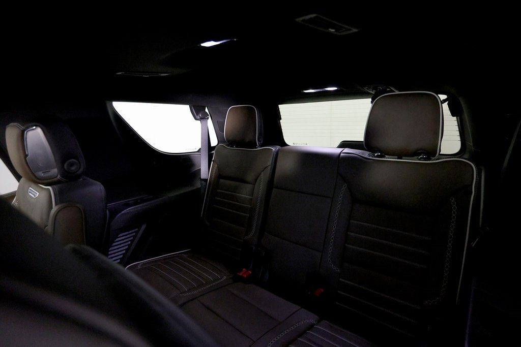 Includes dual rear seat-mounted 12.6" diagonal color-touch LCD HD screens, 2 Bluetooth headphones with 2 HDMI ports on the back of the center console.