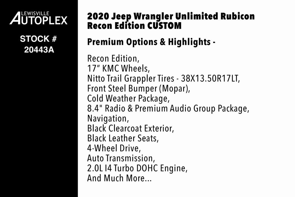 2020 Jeep Wrangler Unlimited Rubicon Recon Edition CUSTOM
