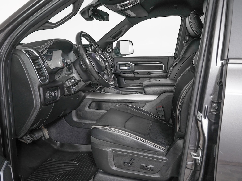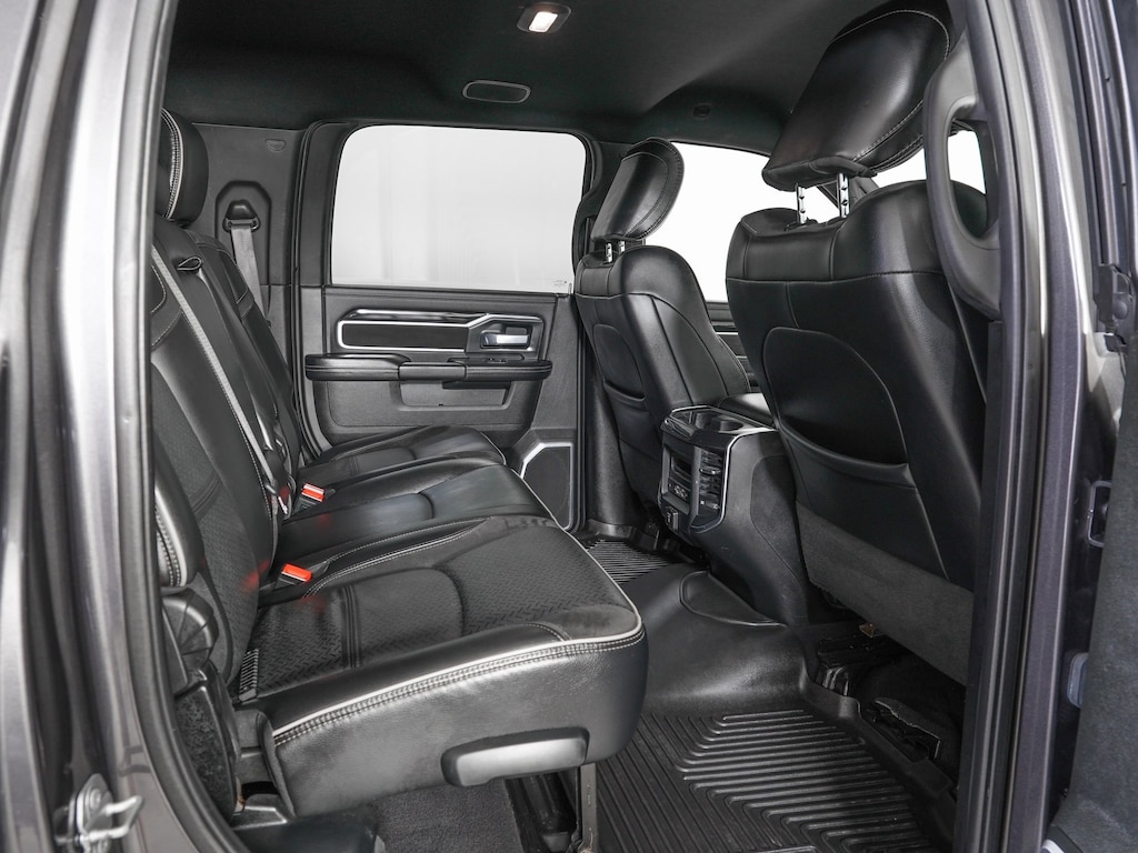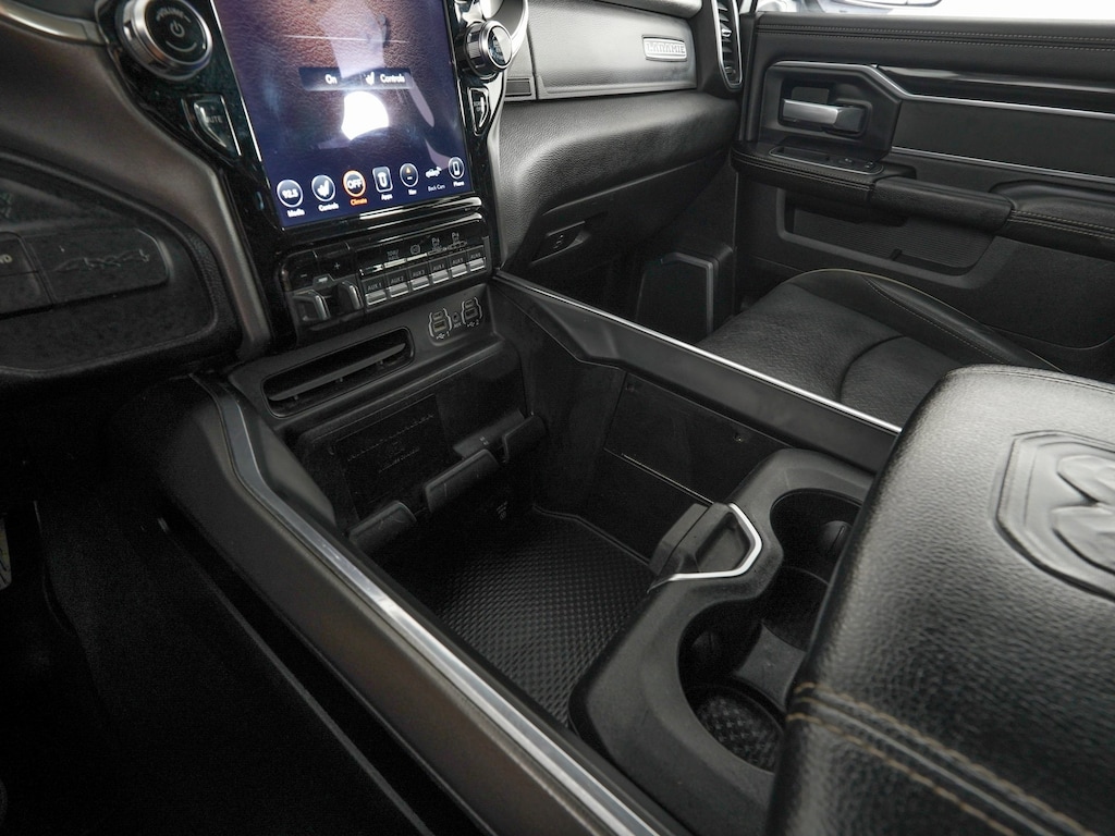 #1 Seat Foam Cushion, 10 Speakers, 115V Auxiliary Rear Power Outlet, 12" Touchscreen Display, 17 Speaker harman kardon Premium Sound, 2 Way Rear Headrest Seat, 4 Way Front Headrests, 400W Inverter, Active Noise Control System, AM/FM radio: SiriusXM, Anti-Spin Differential Rear Axle, Apple CarPlay/Android Auto, Bed Utility Group, Black Exterior Mirrors, Black Exterior Truck Badging, Black Headlamp Bezels, Blind Spot & Cross Path Detection, Bucket Seats, Delay-off headlights, Electronic Stability Control, Front Seat Back Map Pockets, Full Length Upgraded Floor Console, Heated Front Seats, Heated Steering Wheel, High Back Seats, I/P Mounted Auxiliary Switches, Laramie Level 2 Equipment Group, Leather steering wheel, Leather Trimmed Bucket Seats, LED Bed Lighting, Media Hub w/2 Charge Only USBs, Night Edition, ParkView Rear Back-Up Camera, Power 2-Way Driver Lumbar Adjust, Power 2-Way Passenger Lumbar Adjust, Power Adjust 8-Way Driver Seat, Power Adjust 8-Way Front Passenger Seat, Power Adjustable Convex Aux Mirrors, Power Deployable Running Boards, Quick Order Package 2HH Laramie, Radio data system, Radio: Uconnect 12 w/Navigation, Rain Sensitive Windshield Wipers, Rear 60/40 Folding Seat, SiriusXM w/360L, Towing Technology Group, Variably intermittent wipers, Ventilated Front Seats.