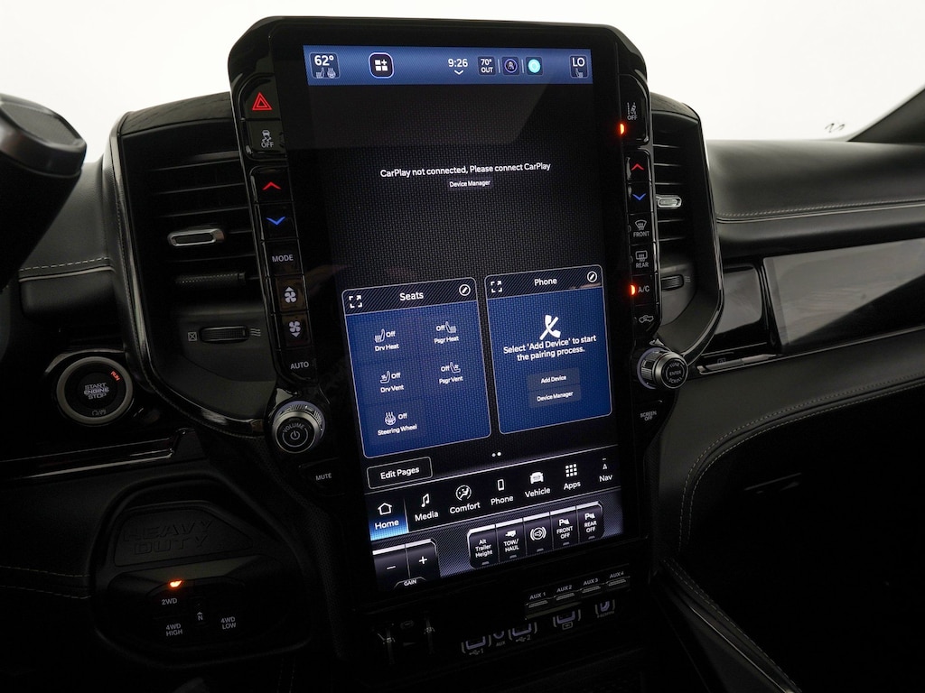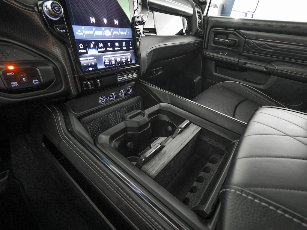 115V Auxiliary Rear Power Outlet, 17 Speakers, 2 Way Rear Headrest Seat, 4 Way Front Headrests, 50 Gallon Fuel Tank, 5th Wheel/Gooseneck Towing Prep Group, 6000# Front Axle w/Hub Ext, Active Lane Management System, Adjustable pedals, AM/FM radio: SiriusXM with 360L, Apple CarPlay/Android Auto, Audio memory, Auto High-beam Headlights, Auto Level Rear Air Suspension, Box & Rear Fender Clearance Lamps, Center Hub, Clearance Lamps, CTR Stop Lamp w/Cargo View Camera, Dash Pass Thru Wire Circuits, Digital Rearview Mirror, Dual Rear Wheels, Electronic Stability Control, Front Bucket Seats, Front Center Armrest w/Storage, Front Seat Back Map Pockets, Fully automatic headlights, harman/kardon® Speakers, Heated door mirrors, Heated front seats, Heated Second Row Seats, Heated Steering Wheel, High Back Seats, I/P Mounted Auxiliary Switches, LED Bed Lighting, Limited Level 1 Equipment Group, MOPAR Spray In Bedliner, Navigation System, Night Edition, ParkView Rear Back-Up Camera, Passenger door bin, Power 2-Way Driver Lumbar Adjust, Power 2-Way Passenger Lumbar Adjust, Power Adjust 8-Way Driver Seat, Power Adjust 8-Way Front Passenger Seat, Power Deployable Running Boards, Power door mirrors, Power passenger seat, Power Sunroof, Quick Order Package 24M Limited, Radio data system, Radio: Uconnect 5 Nav w/14.4" Display, Rain sensing wipers, Split folding rear seat, Ultra Premium Leather Seats, Ventilated Front Seats, Voltmeter, Wheels: 17" x 6.0" Polished Aluminum.