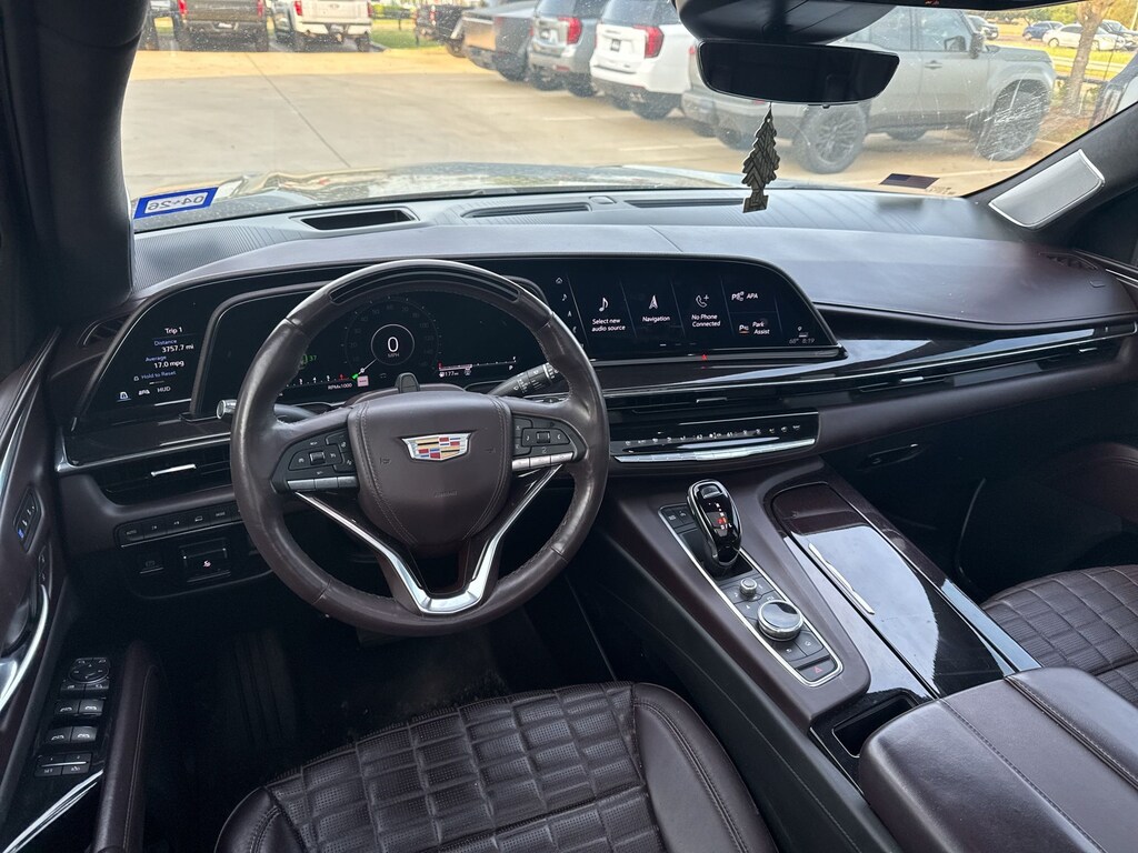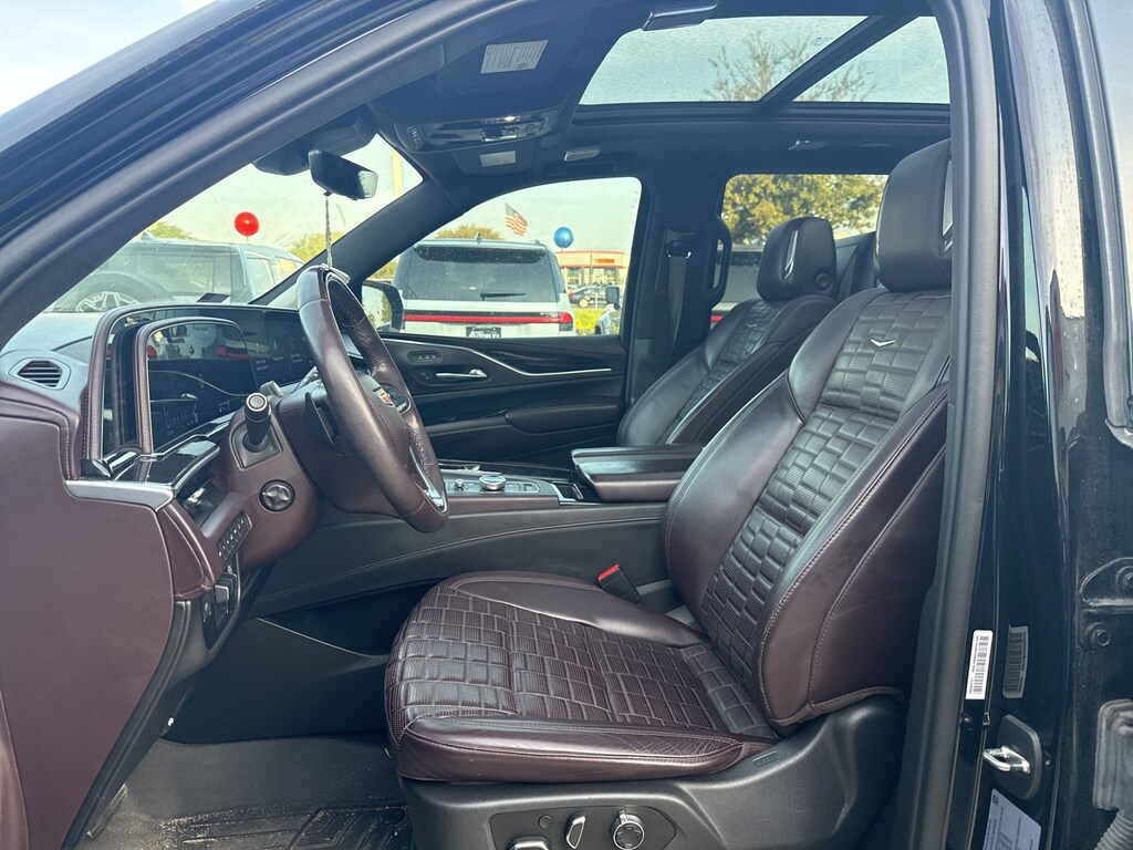 4WD, Dark Auburn With Jet Black Accents Leather, Adaptive Cruise Control, Air Ionizer, Air Ride Adaptive Suspension, AKG Studio Reference 36-Speaker Audio System, Automatic Seat Belt Tightening, Body-Color Door Handles, Door Lock & Latch Shields, Driver Assist Tech Package, Electronic Limited-Slip Differential, Enhanced Automatic Emergency Braking, Enhanced Automatic Parking Assist, Floor Console w/Covered Storage, Glass Breakage Sensor, Gloss Black Escalade Nameplate (LPO), Hitch Guidance w/Hitch View, Illuminating Front & Rear Sill Plates, In-Vehicle Trailering System App, Integrated Trailer Brake Controller, Lane Keep Assist w/Lane Departure Warning, Monochrome Cadillac Emblems (LPO), Onyx Package (LPO), Platinum Interior Trim, Power Liftgate, Power Panoramic Tilt-Sliding Sunroof, Preferred Equipment Group 1SH, Rear Camera Mirror, Rear Camera Mirror Washer, Rear Cross Traffic Alert, Rear Seat Entertainment System, Reconfigurable Full-Color Head-Up Display, Reverse Automatic Braking, Running Board Assist Steps, Soft Closing Front & Rear Doors, Theft-Deterrent Alarm System, Trailer Side Blind Zone Alert, Vehicle Inclination Sensor, Vehicle Interior Movement Sensor, Wheels: 22" 12-Spoke Gloss Black Alloy (LPO), Wheels: 22" Interim (LPO).