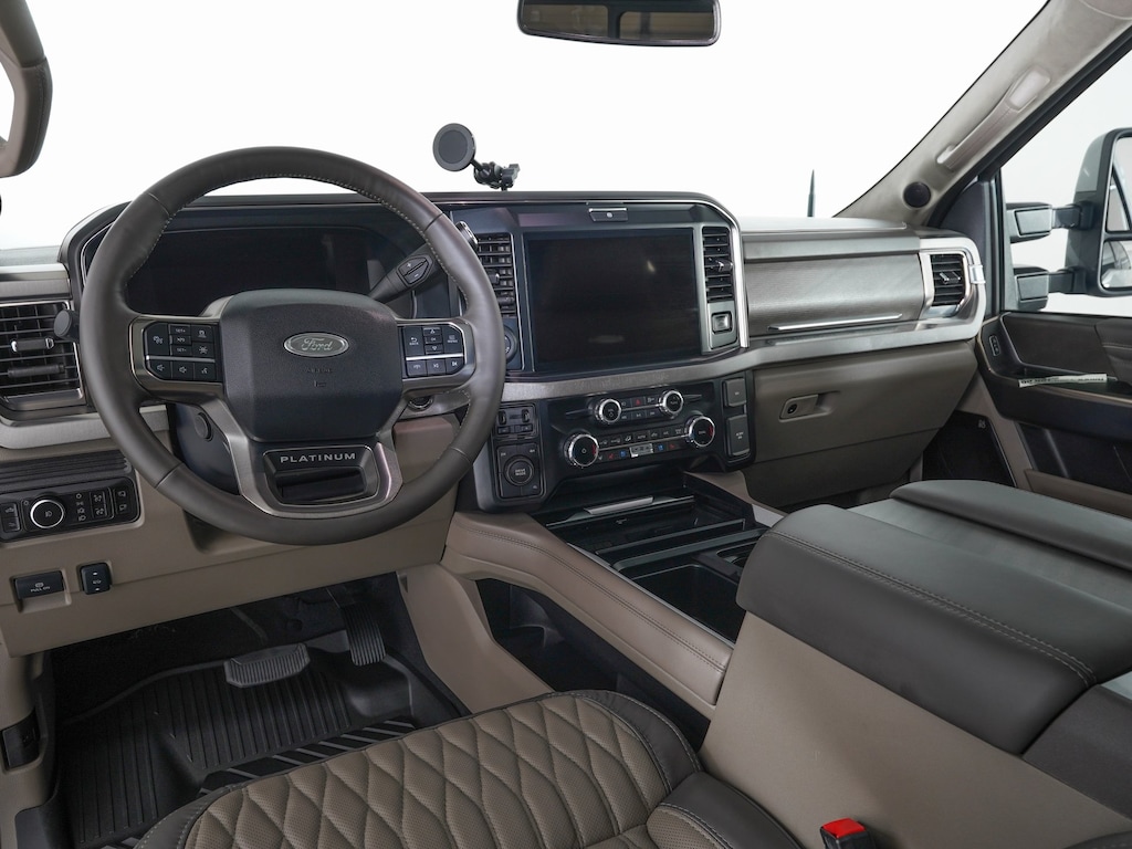 4WD, 250 Amp Alternator, Adjustable pedals, All-Weather Floor Mats, AM/FM radio: SiriusXM with 360L, Auto High-beam Headlights, Dual rear wheels, Electronic Stability Control, Engine Block Heater, Exterior Parking Camera Rear, Flow-Through Console, Front Bucket Seats, Front Center Armrest, Front reading lights, Garage door transmitter, Gooseneck Dual Hitch Kit, GVWR: 14,000 Lb Payload Package, Heated front seats, Heated rear seats, Heated steering wheel, Illuminated Scuff Plates, Internet access capable: FordPass Connect 5G, Limited Slip with 4.30 Axle Ratio, Navigation System, Order Code 773A, Platinum Plus Package, Power passenger seat, Premium Leather Instrument Panel Topper, Premium Luxury Leather-Wrapped Steering Wheel, Premium Venetian Leather Door Panel, Pro Power Onboard - 2kW, Radio: B&O Unleashed Sound System by Bang & Olufsen, Rain sensing wipers, Satin Chrome Door Handles, SiriusXM Radio with 360L, Snow Plow Prep Package, Split folding rear seat, SYNC 4 with Enhanced Voice Recognition, Twin Panel Power Moonroof, Unique Platinum Leather 40/Console/40 Seats, Unique Platinum Plus Luxury Leather 40/Console/40 Seats, Unique Satin Finish Grille, Unique Split Center Console Armrest, Upfitter Switches (6), Variably intermittent wipers, Ventilated front seats. DRW