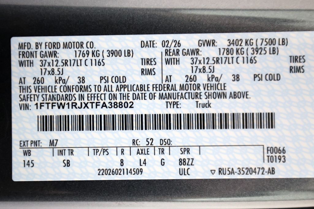 - 1FTFW1RJXTFA38802