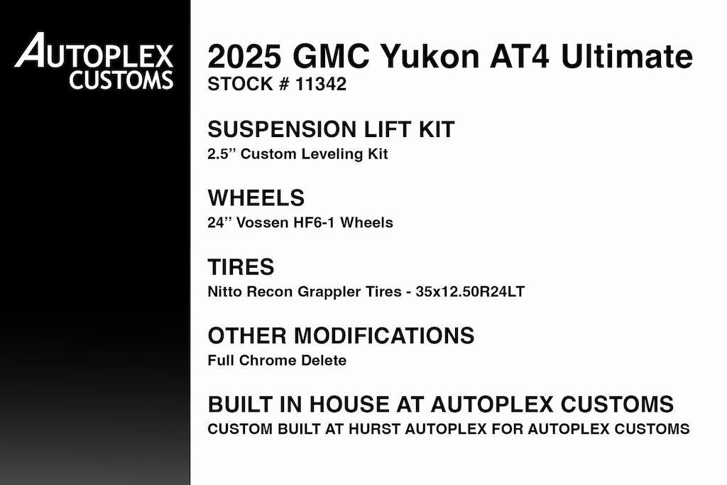 4WD, 15" Diagonal Multi-Color Head-Up Display, 18 Speakers, 3 Years of OnStar Digital Services/Safety Services, 4-Spoke Leather-Wrapped Steering Wheel, 4-Way Power Driver Lumbar Seat Adjuster, 4-Way Power Front Passenger Lumbar Seat Adjuster, 8" Diagonal Rear Touchscreen Climate Control, Adaptive suspension, Advanced Security Package, Advanced Technology Package, Air Ride Adaptive Suspension, AM/FM radio: SiriusXM with 360L, Apple CarPlay/Android Auto, Audio memory, Auto High-beam Headlights, Auto-leveling suspension, AutoSense Hands-Free Power Liftgate, Black Roof-Mounted Luggage Rack Side Rails, Blind Zone Steering Assist w/Trailering, Body-Color Door Handles, Bose 18-Speaker Surround w/CenterPoint, Bright Front & Rear Door Sill Plates, Driver 2-Way Power Upper Shoulder, Driver Attention Assist, Driver Power Massage Seat, Dual Exhaust System, Dual-Pane Panoramic Power Sunroof, Electronic Limited Slip Differential (eLSD), Electronic Stability Control, Exterior Parking Camera Rear, Extra Capacity Cooling System, Four wheel independent suspension, Front High-Approach Angle Fascia, Front Passenger 2-Way Power Upper Shoulder, Front Passenger Power Massage Seat, Full Grain Leather Seats, Glass Breakage Sensor, Headphones, Heads-Up Display, Heated Driver & Front Passenger Seats, Heated rear seats, Heated steering wheel, Heavy-Duty Air Filter, Hill Descent Control, Hitch View, Inside Rearview Auto-Dimming Rear Camera Mirror, Integrated Trailer Brake Controller, Magnetic Ride Control Suspension, Max Trailering Package, Navigation system: GMC Connected Navigation, Night Vision, Perforated Heated & Ventilated Dr & Frt Pass Seats, Power Liftgate, Power Release 2nd Row Bucket Seats, Power Tilt & Telescopic Steering Column, Power-Retractable Assist Steps, Preferred Equipment Group 4SG, Premium Capability Package w/Active Response 4WD, Radio: 16.8" Diagonal Premium GMC Infotainment Sys, Rain sensing wipers, Rear audio controls, Rear Seat Media System, Red Horizontal-Mounted Recovery Hooks, SiriusXM w/360L, Smart Trailer Integration Indicator, Sport Pedal Cover Kit (LPO), Super Cruise, Theft-Deterrent Alarm System, Vehicle Inclination Sensor, Vehicle Interior Movement Sensor, Wheel Locks (Set of 4) (LPO).