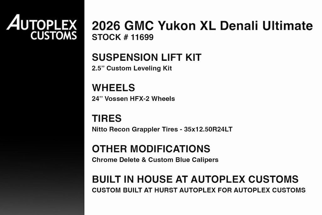 4WD, 15" Diagonal Multi-Color Head-Up Display, 18 Speakers, 3 Years OnStar One, 4-Spoke Leather-Wrapped Steering Wheel, 4-Way Power Driver Lumbar Seat Adjuster, 4-Way Power Front Passenger Lumbar Seat Adjuster, 8" Diagonal Rear Touchscreen Climate Control, Adaptive suspension, Advanced Security Package, Advanced Technology Package, Air Ride Adaptive Suspension, AM/FM radio: SiriusXM with 360L, Apple CarPlay/Android Auto, Audio memory, Auto High-beam Headlights, Auto-leveling suspension, AutoSense Hands-Free Power Liftgate, Blind Zone Steering Assist with Trailering, Bose 18-Speaker Surround with Centerpoint, Bright Front and Rear Door Sill Plates, Driver 2-Way Power Upper Shoulder, Driver Attention Assist, Driver Power Massage Seat, Dual Exhaust System, Dual-Pane Panoramic Power Sunroof, Electronic Limited Slip Differential (ELSD), Electronic Stability Control, Enhanced Trailering Technology Package, Exterior Parking Camera Rear, Extra Capacity Cooling System, Four wheel independent suspension, Front Passenger 2-Way Power Upper Shoulder, Front Passenger Power Massage Seat, Glass Breakage Sensor, Headphones, Heads-Up Display, Heated Driver and Front Passenger Seats, Heated rear seats, Heated steering wheel, Hill Descent Control, Hitch View, Inside Rearview Auo-Dimming Rear Camera Mirror, Integrated Trailer Brake Controller, Magnetic Ride Control Suspension, Max Trailering Package, Navigation system: GMC Connected Navigation, Night Vision, Perforated Heather and Ventilated Driver and Front Passenger Seats, Power Liftgate, Power Release 2nd Row Bucket Seats, Power Tilt and Telescopic Steering Column, Power-Retractable Assist Steps, Preferred Equipment Group 5SB, Premium Capability Package with Active Response 4WD, Radio: 16.8" Diagonal Premium GMC Infotainment System, Rain sensing wipers, Rear audio controls, Rear Seat Media System, SiriusXM with 360L, Smart Trailer Integration Indicator, Sport Pedal Cover Kit, Super Cruise, Theft-Deterrent Alarm System, Trailer Camera Provisions, Trailering Assist Guidelines, Vader Bodyside Moldings, Vehicle Inclination Sensor, Vehicle Interior Movement Sensor, Wired Auxiliary Trailer Camera.
