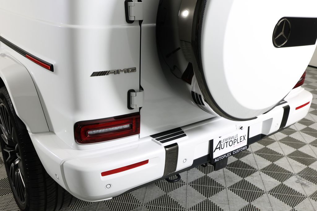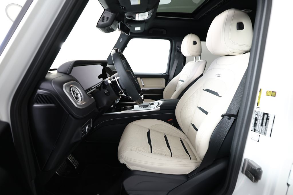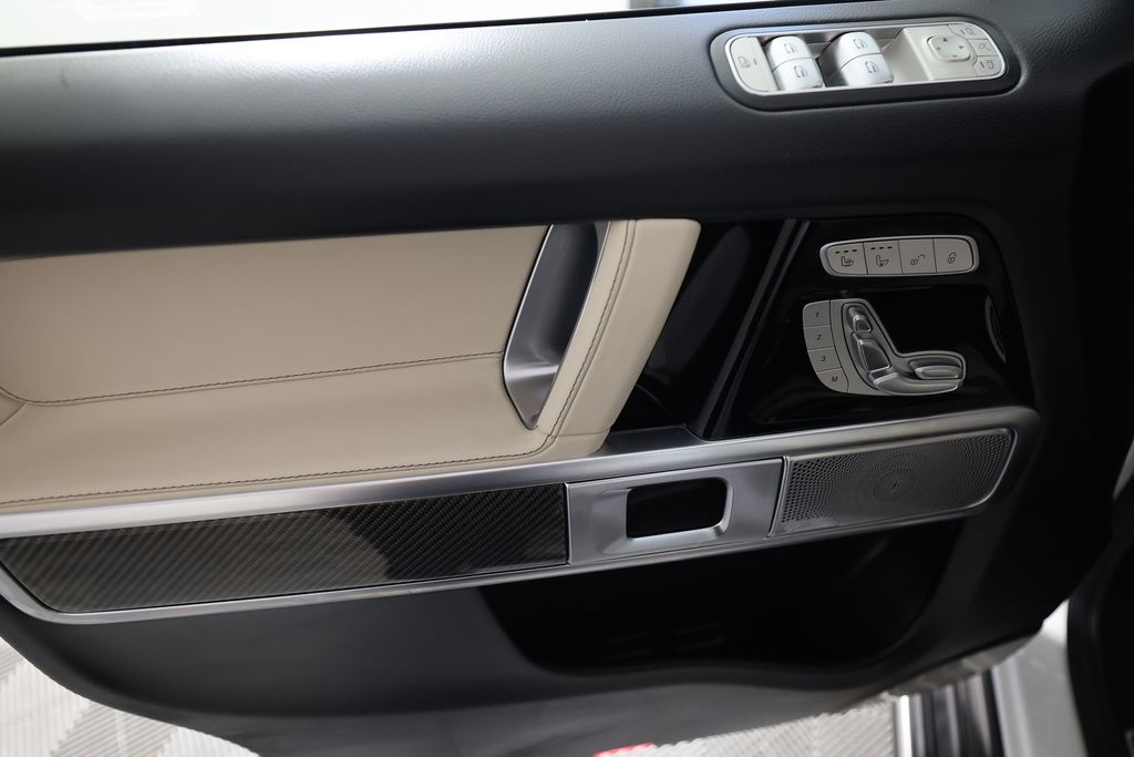 This G-Class is equipped with an impressive array of features that elevate the driving experience. The AMG® Performance Package and ENERGIZING Package Plus add dynamic handling, premium comfort, and advanced safety technologies. The MANUFAKTUR Dark Chrome Package and carbon fiber accents exude a bold, distinctive style.