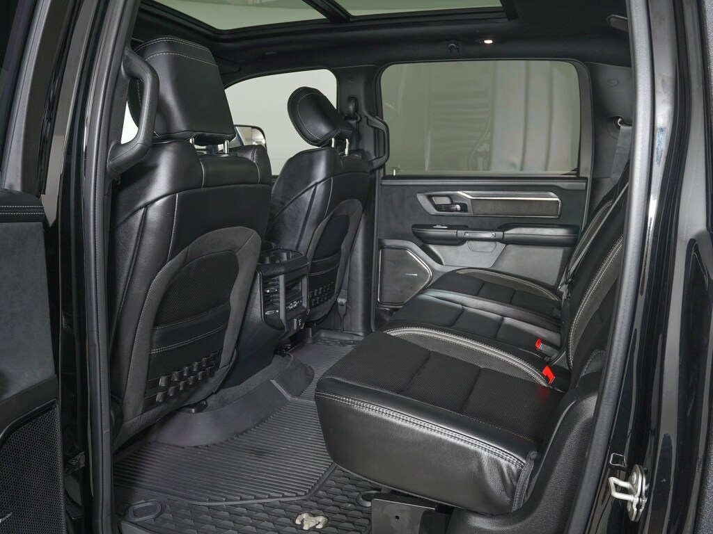 #2 Seat Foam Cushion, 10 Speakers, 4 Way Front Headrests, Accent Color Door Handles, Adaptive suspension, AM/FM radio: SiriusXM with 360L, Apple CarPlay/Android Auto, Auto High-beam Headlights, Auto-dimming door mirrors, Black Exterior Mirrors, Black Power-Fold Trailer Tow Mirrors, Blind Spot & Cross Path Detection, Bucket Seats, Center Console Parts Module, Delay-off headlights, Dual-Pane Panoramic Sunroof, Electronic Stability Control, Exterior Mirrors Courtesy Lamps, Exterior Mirrors w/Heating Element, Exterior Mirrors w/Memory, Exterior Mirrors w/Supplemental Signals, Front fog lights, Front Seat Back Map Pockets, Full Length Premium Upgraded Floor Console, harman/kardon 19 Speaker Premium Sound (DISC), Heads-Up Display, Heated Front Seats, Heated Steering Wheel, IP LED Ambient Light Pipe, Leather Shift Knob, Leather steering wheel, Leather Trimmed Bucket Seats, Leather/Suede Flat-Bottom Steering Wheel, LED CHMSL Lamp, Luxury Front Door Trim Panel, Manufacturer's Statement of Origin, Mirror Clearance/Running Lights, Mirror-Mounted Aux Reverse Lamps, MOPAR Bright Pedal Kit, Navigation System, ParkSense Front/Rear Park Assist w/Stop, ParkView Rear Back-Up Camera, Power 4-Way Driver Lumbar Adjust, Power 4-Way Passenger Lumbar Adjust, Power-Folding Mirrors, Quick Order Package 29Y, Radio data system, Radio: Uconnect 5 Nav w/12.0" Display, Rain Sensitive Windshield Wipers, Rear 60/40 Folding Seat, Sun Visors w/Illuminated Vanity Mirrors, Surround View Camera System, Trailer Tow Mirrors, TRX Level 2 Equipment Group, Variably intermittent wipers, Ventilated Front Seats, Voltmeter, Wireless Charging Pad.